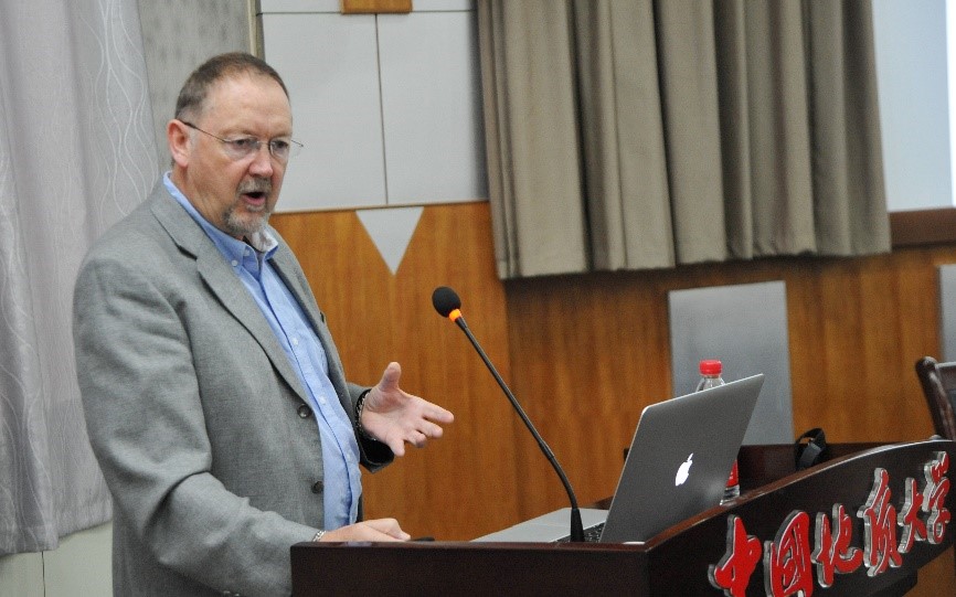 Ben Kneller教授是国际著名沉积学专家,多次受邀在美洲、欧洲、中国石油机构及大学科研单位开展有关深水沉积过程和沉积记录的讲座和短期课程。本次Ben Kneller教授报告的主题为“深水重力流沉积体系发育及演化”,分别讲述了深水沉积作用过程、深水沉积体系及其内部构成、重力流控制的深水沉积体系等专题。
