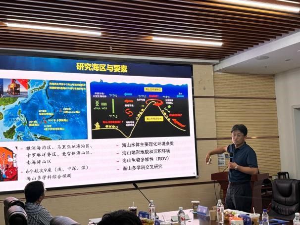 中国科学院海洋研究所徐奎栋研究员应邀作《西太平洋海山生物多样性与连通性》报告。徐奎栋研究员的报告首先系统总结了国内外海山探测与研究的概况。其次,系统探讨了西太平洋海山生物多样性与连通性的研究进展,他的研究组在雅浦海沟区、马里亚纳海沟区、卡罗琳洋脊区、麦哲伦海山区开展了5个航次9座海山多学科综合探测,获得海山大量生物新发现和新认知,发现西太平洋海山的低连通性;探讨了海山驱动的深海生物连通性与进化;比较了海山与相邻深海的分类和系统发育多样性。最后,他梳理和总结了目前海山生物多样性研究存在的主要问题,包括海山生物多样性的地理分布格局、海山在深海动物地理区划中的地位、地形驱动的海洋生物多样性形成与演化。