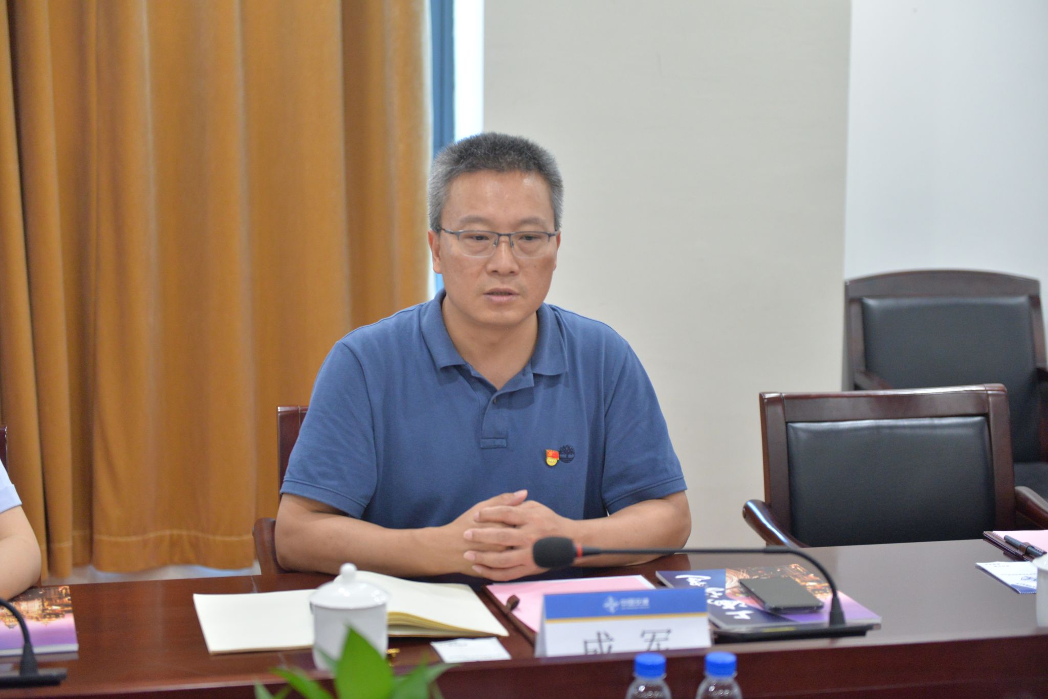海洋学院党委书记成军介绍中国地质大学和海洋学院的基本情况。他表示此行来到上海交建开展党建共建活动是海洋学院与单位深化合作的良好开端,期待后期能够在人才培养、就业工作、科研合作、单位人员学历提升等方面深化合作,以期做到优势互补、共同发展。