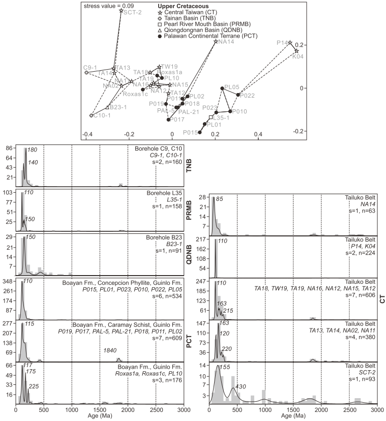 巴拉望陆块的新生代演化与南海密切相关,渐新世至早中新世南海洋壳不断扩张使得巴拉望陆块向南漂移,南海洋壳及其南北两侧大陆边缘的沉积层序对此已有详细的记录。然而,巴拉望陆块的起源和早期古地理演化还存在诸多争议和不确定性,特别是针对如下问题:该陆块最古老岩层的年龄和成因;该陆块对古太平洋俯冲和岛弧活动的沉积响应;该陆块与南海北部陆缘早期的共轭关系以及同时代地层之间的地质联系;该陆块与中生代亚洲东部主动陆缘的联系。