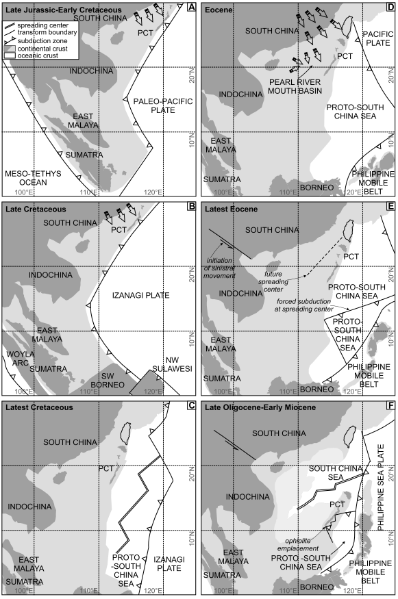图3 南海地区侏罗纪-新生代古地理演化示意图 |