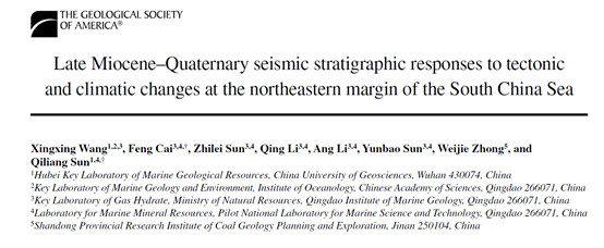 题目:GSA:晚中新世—第四纪南海东北陆缘地震地层对构造和气候变化的响应